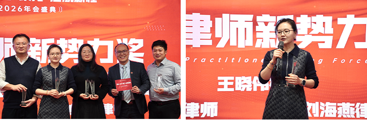 紧接着,精英律师新势力奖授予了刘会芳、王晓伟、常乐、鲍文博、刘海燕五位律师。刘会芳律师发表感言:“律师的价值在于用专业守护正义。这个奖项是对我们青年律师‘聚力’耕耘的肯定。我们将继续以专业为舟,以协作为桨,在法治的航道上奋力前行。